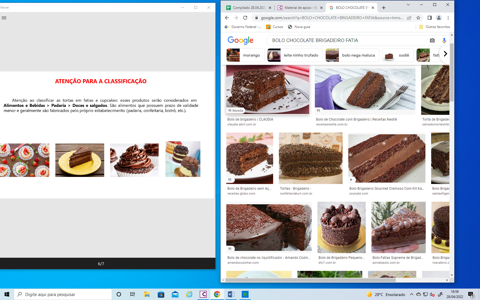 >doces e salgados (conforme Material de ajuda