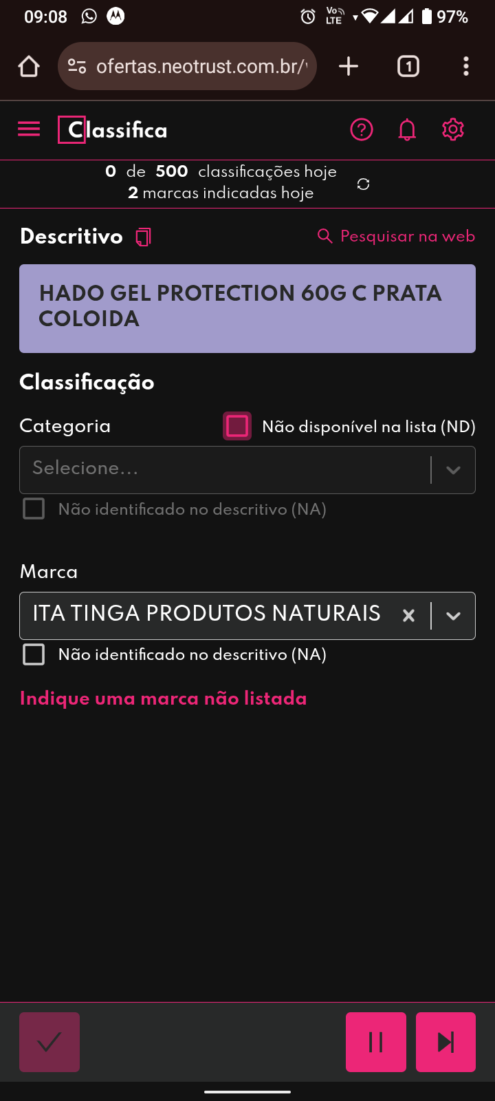 Pode ser uma fila somente de marca. Caso não consiga classificar a marca e salvar, pule o produto por favor.