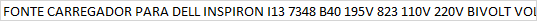 FONTE CARREGADOR "*PARA" DELL INSPIRON I13 7348 B40 195V 823 110V 220V BIVOLT VOLTAGEM DE ENTRADA coloquei NA (errado) sendo que tem várias marcas deste produto. Em sites onde não tem *"PARA" busquei para saber se era original, ao ler nas entrelinhas consta: É ORIGINAL: NÃO, Produto compativel com Dell Inspiron. Na própria Dell onde busco as informações não consegui identificar com esse DESCRITIVO.