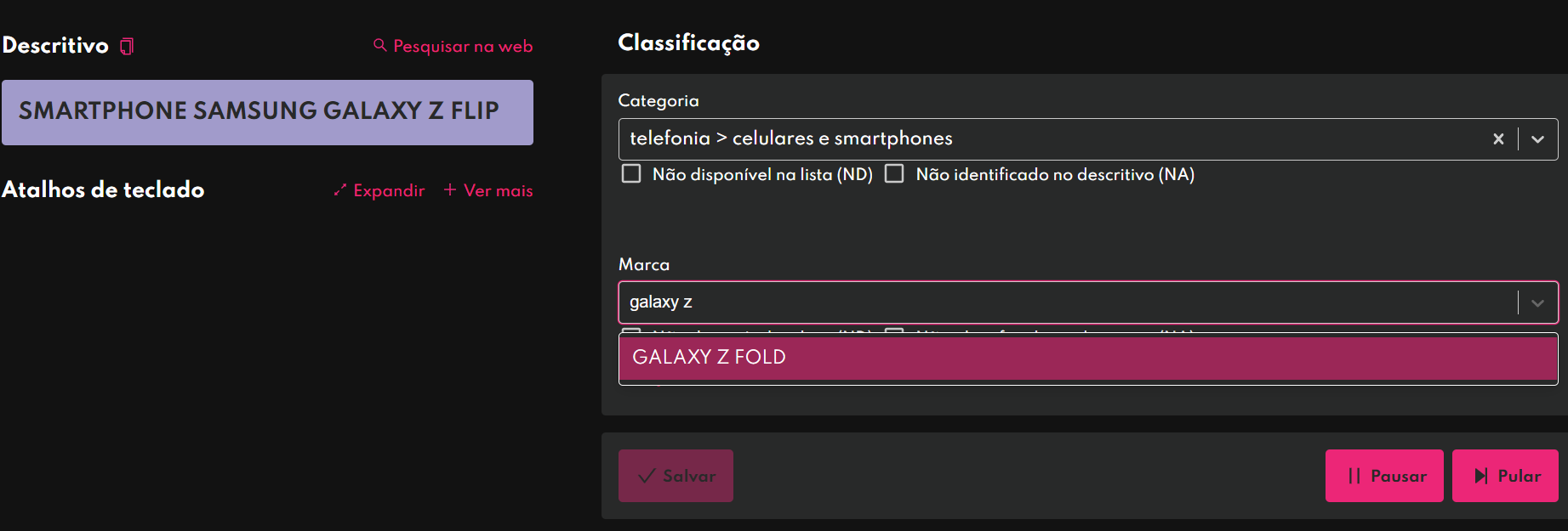 mas na marca só temos GALAXY Z FOLD.