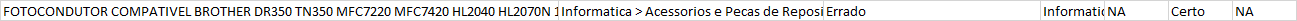 FOTOCONDUTOR COMPATIVEL BROTHER DR350 TN350 MFC7220 MFC7420 HL2040 HL2070N 12K PREMIUM Informatica > Acessorios e Pecas de Reposicao para Informatica Errado Informatica > Periferico > Impressao > Cartucho/Toner/Tinta NA Certo NA
